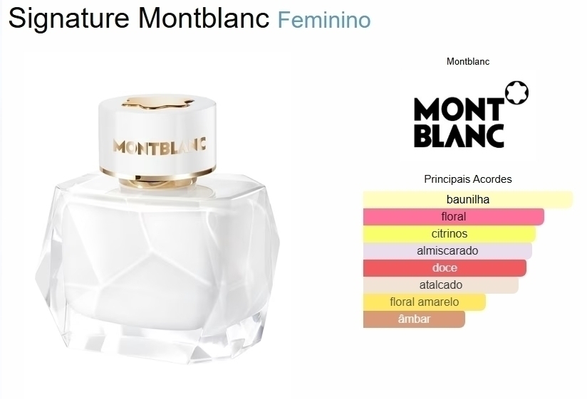 Signature Montblanc é uma fragrância elegante e moderna que combina notas florais frescas com toques amadeirados suaves, criando um aroma delicado e sofisticado. Ideal para mulheres que buscam uma essência equilibrada, que transmita confiança e feminilidade com sutileza.